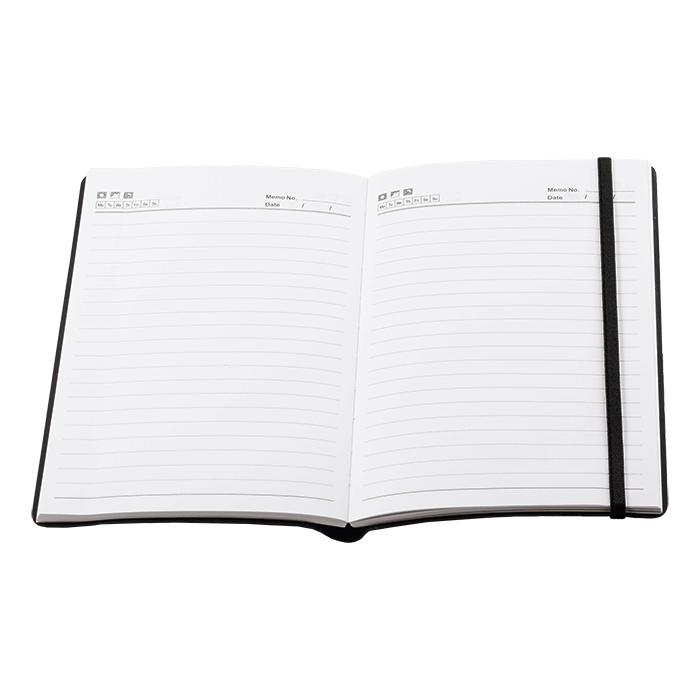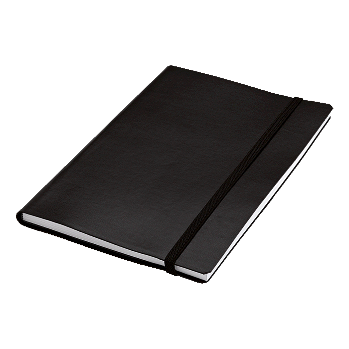 Elastic band closure doubles as a bookmark