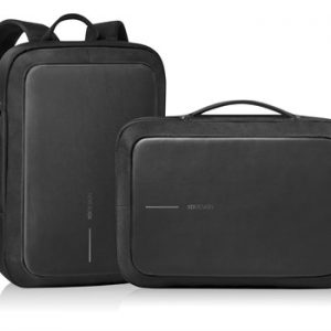 Keep your belongings safe and make your commute all that more comfortable with our latest generation Bobby anti-theft backpack and briefcase. It’s made out of high quality polyester and has reflective prints for your night safety. There are padded compartments for a 15.6” laptop, tablet up to 10” and all your other gear on the inside. The built in metal frame keeps your belongings safe and backpack in shape. Easily switch from backpack to briefcase carrying. Quickly lock your bag to any fixed object with the integrated zinc alloy lock in the right strap. Including luggage strap. Registered design®