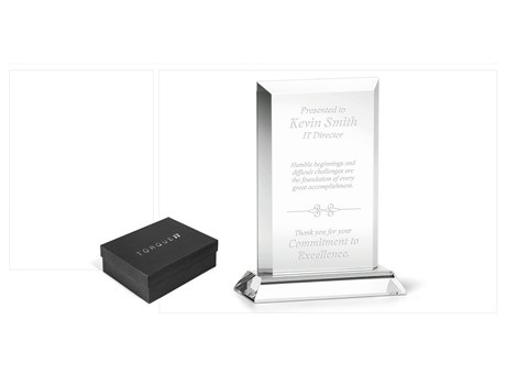 Simple but elegant . Make use of the great branding area . This optical glass award comes in a black presentation box.