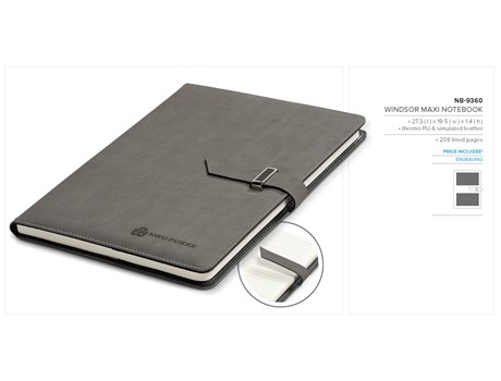 A stunning maxi size notebook with a stitch accent border. Includes a strap closure and has 104 lined pages.• Thermo PU & simulated leather : 27.3 ( l ) x 19.5 ( w ) x 1.4 ( h ). Excludes pen.